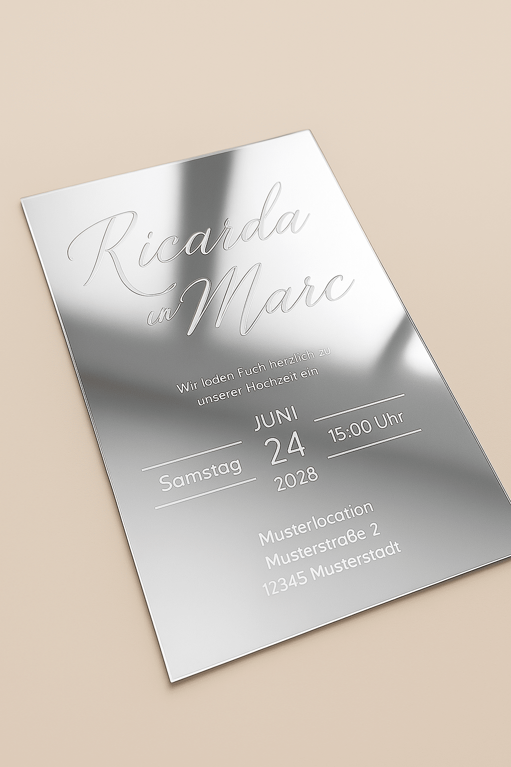 Produktinformation: „Acryl-Spiegel Einladungskarte zur Hochzeit Colorado Silber“