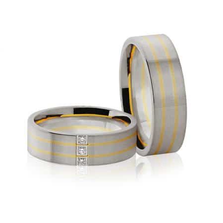 Die 2 hochwertigen Bicolor Trauringe bestehen aus Weißgold und Gelbgold